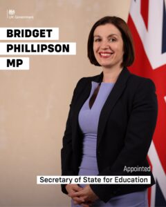 ব্রিটেন সরকারের নতুন শিক্ষামন্ত্রী হয়েছেন ৪০ বছর বয়সি নারী ব্রিজেট ফিলিপসন। তিনি স্টারমারের খুবই ঘনিষ্ঠ।