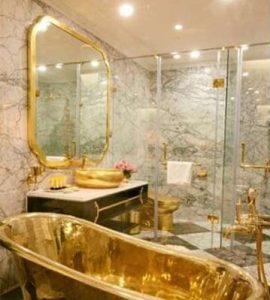 সোনায় মোড়ানো বাথটাবসহ বাথরূমের অভ্যন্তরটি এমন।